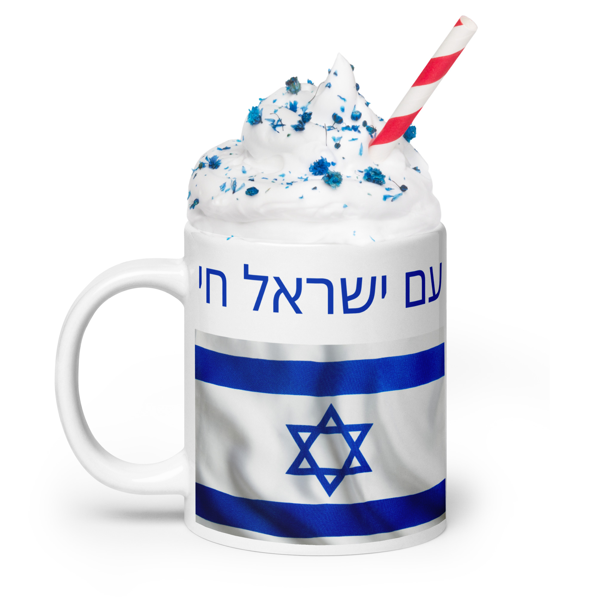 This elegant Am Yisrael Chai Hebrew Israel Flag White Glossy Mug is a stunning addition to your kitchen. Featuring the inspiring Hebrew phrase “Am Yisrael Chai” (“The People of Israel Live”) alongside the vibrant Israeli flag, this high-quality ceramic mug is a meaningful expression of your support for Israel. Perfect for your morning coffee, tea, or any other beverage, this stylish mug makes a bold statement and is a wonderful way to connect with your heritage.