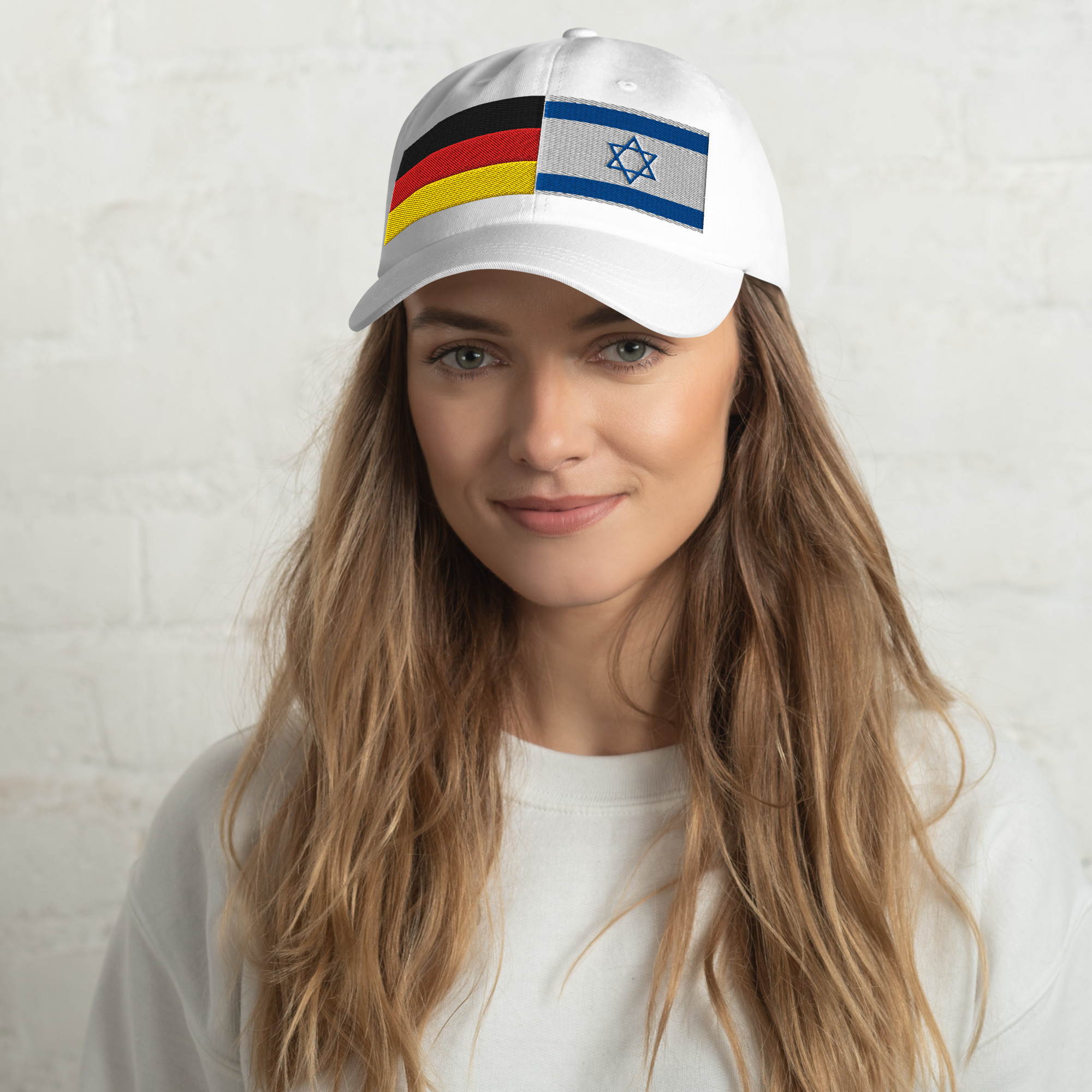 This stylish Israel & Germany Flags White Cap is a meaningful addition to your everyday look. Express your pride and connection with this unique design featuring the combined flags of Israel and Brazil, embroidered side by side for a bold yet clean statement. Crafted from high-quality materials, this comfortable hat is perfect for daily wear, travel, or showing your support on any occasion.