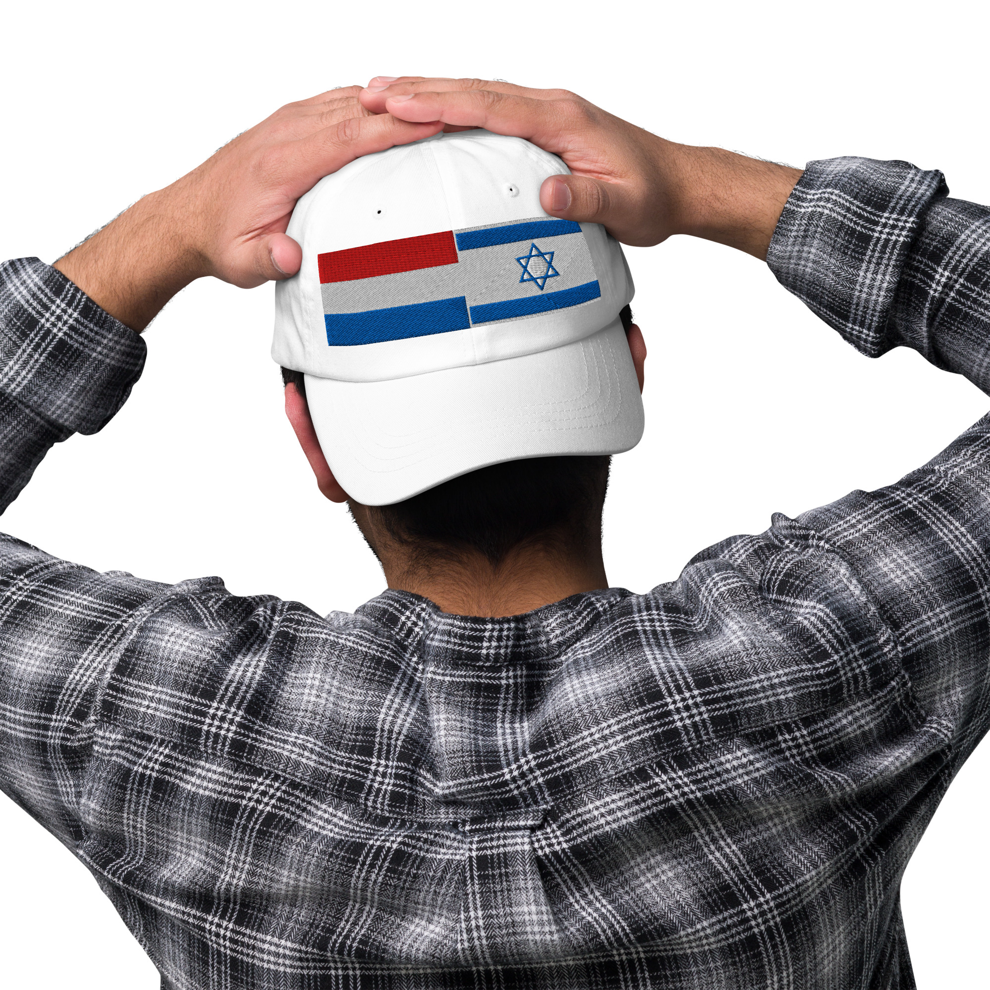 This stylish Israel & Netherlands Flags White Cap is a meaningful addition to your everyday look. Express your pride and connection with this unique design featuring the combined flags of Israel and Brazil, embroidered side by side for a bold yet clean statement. Crafted from high-quality materials, this comfortable hat is perfect for daily wear, travel, or showing your support on any occasion.
